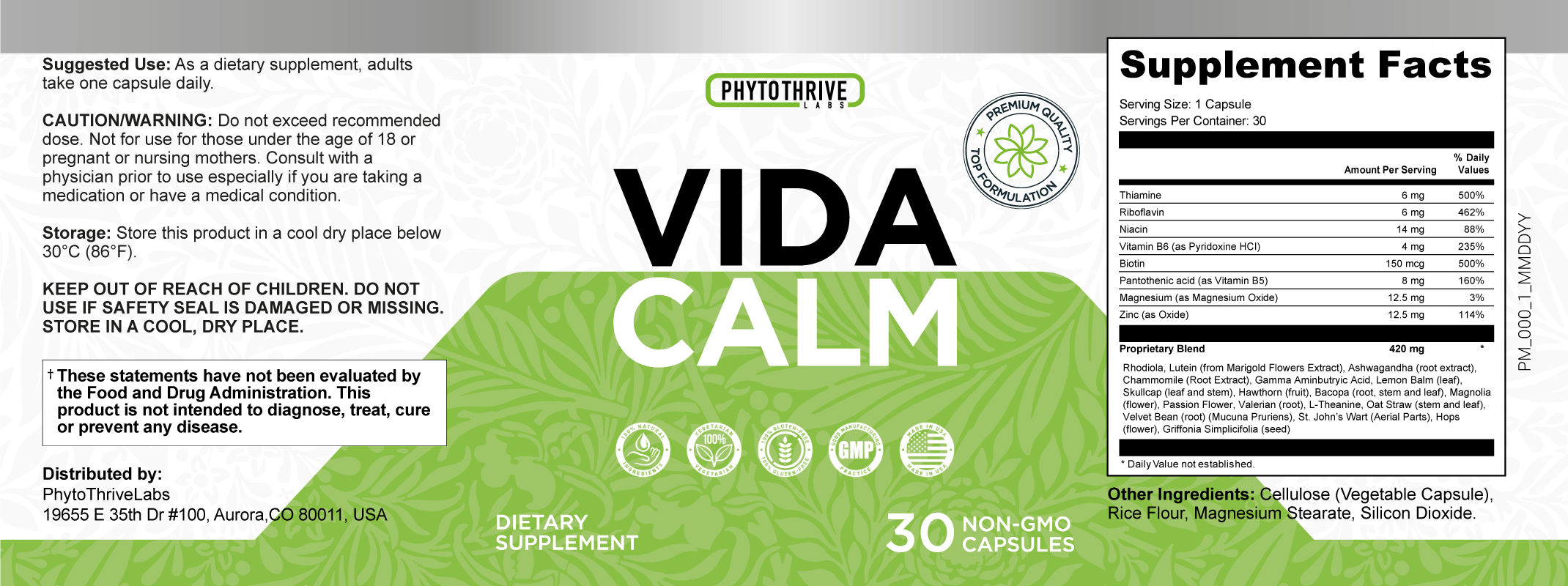 To view the full list of ingredients and the nutritional values of the Vidacalm, please check the product label below.